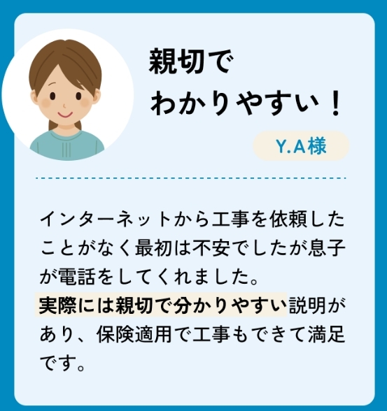 火災保険の適応実績もバッチリ!!保険が下りれば工事費用の負担ナシ!費用の建て替えも不要です!