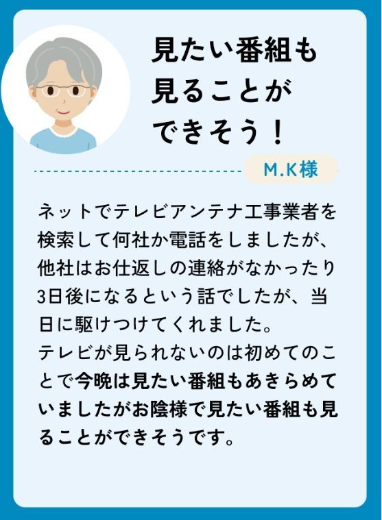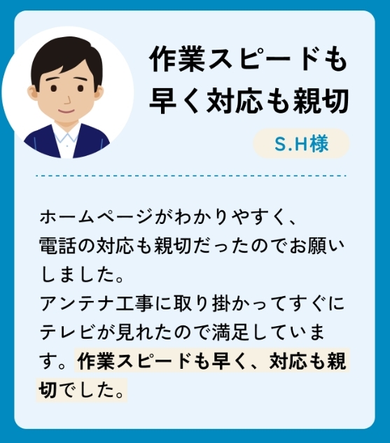 98.8%の世帯で『その日のうちにテレビが見れた』とスピード対応が魅力です!