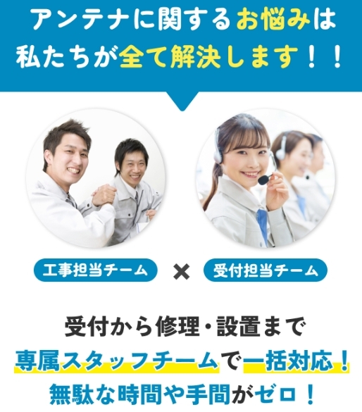 電話対応~施工まで全て自社!専属チームでスピード解決!無駄な時間と手間もゼロ!テレビを最速で映す体制が整っています!