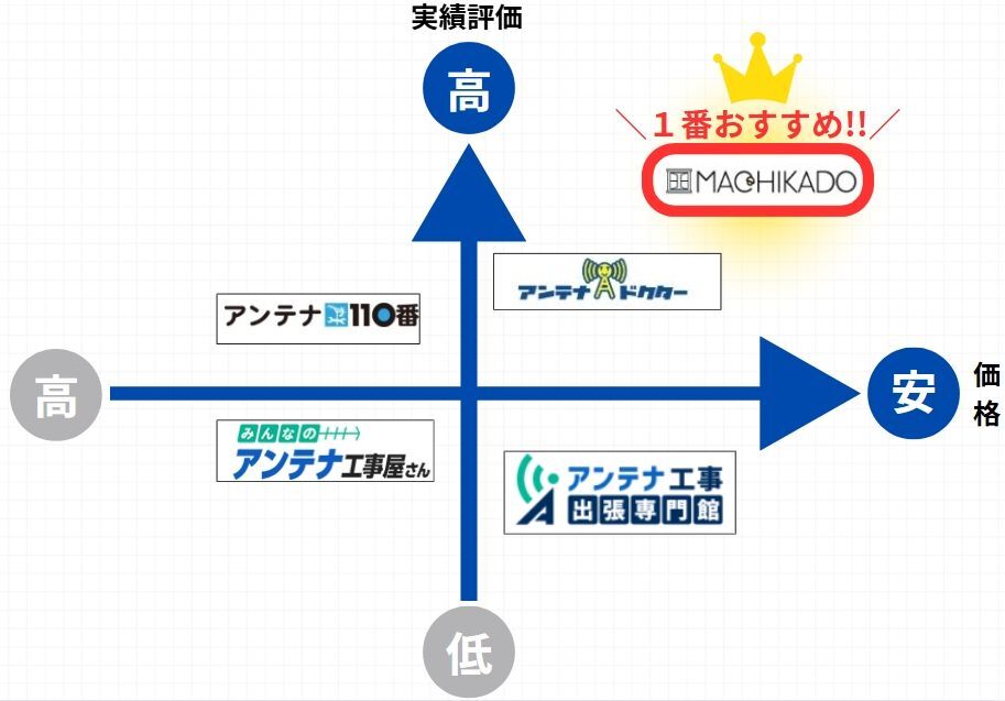 そこでアンテナを修理・交換してくれる業者は様々ありますが、やはりサービスも料金もアンテナ専門業者がもっともオススメです。